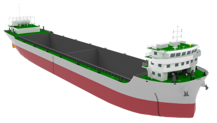 活動儀式上,三點水新能源正式發(fā)布江豚L-120 多用途標(biāo)準(zhǔn)船型。該船型總長 119.98m,型寬 21.80m,型深 8.50m,采用高效的結(jié)構(gòu)設(shè)計和流線型雙舵系統(tǒng),可升降調(diào)節(jié)的側(cè)推系統(tǒng),操控體驗優(yōu)秀。在裝載能力方面表現(xiàn)出色,散貨裝載量可達(dá)15,000噸,標(biāo)準(zhǔn)集裝箱裝載量高達(dá)735TEU,總噸位 9500載重噸,散裝裝載量提升 8%,集裝箱裝載量提升 20%,總噸位提高 8%-12%。該船型以LNG為動力,其LNG儲罐采用雙殼設(shè)計,安全可靠,在經(jīng)濟航速下,百公里燃料消耗量僅為 0.96t,相比傳統(tǒng)燃油百公里節(jié)約5480元,碳排放減少 30%。按照“船員之家”建造思路,船型內(nèi)部采用高端全屋定制,為船員提供舒適的水上居住環(huán)境。